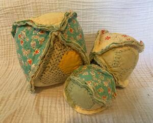 Vintage quilt balls rustic farmhouse primitive decor, set of 3