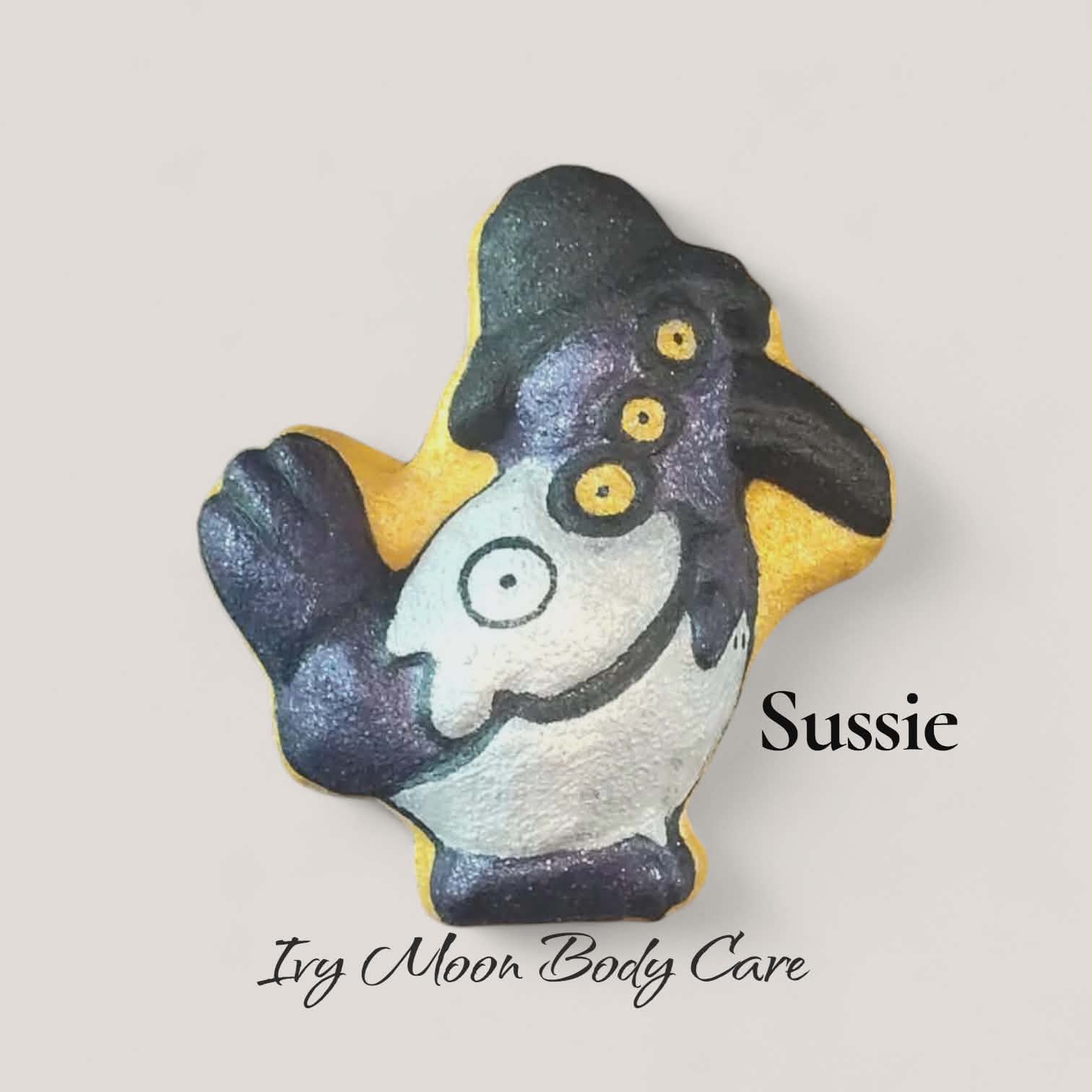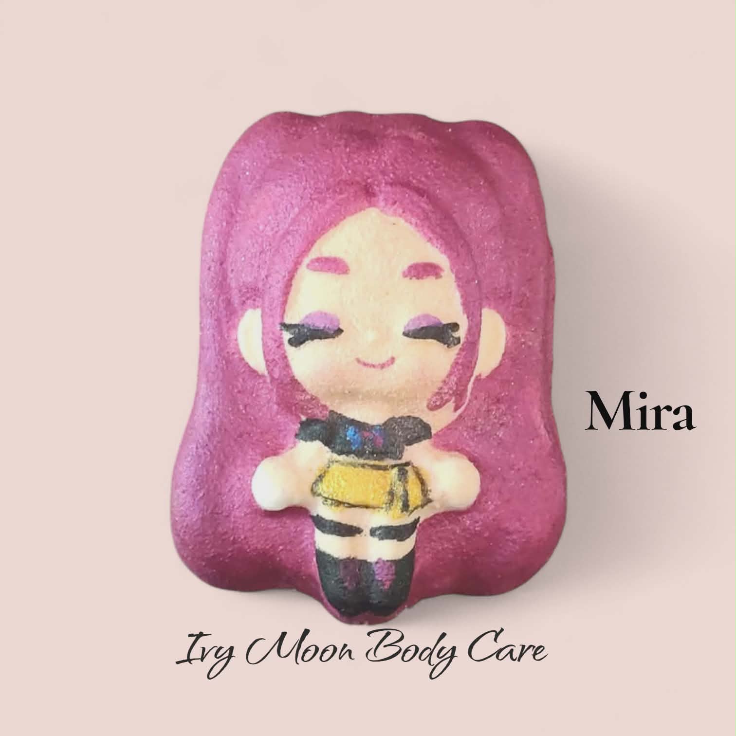 Bring some K-Pop energy to your bath with these hand-painted Demon Hunter bath bombs, inspired by the fierce characters Ramey, Mira, Zoey, Derpy, and Sussie. Each bath bomb is handcrafted and hand painted, making every one a little unique. Once dropped into the tub, it foams richly and releases a burst of vibrant colors hidden inside, turning your bath into a colorful experience.