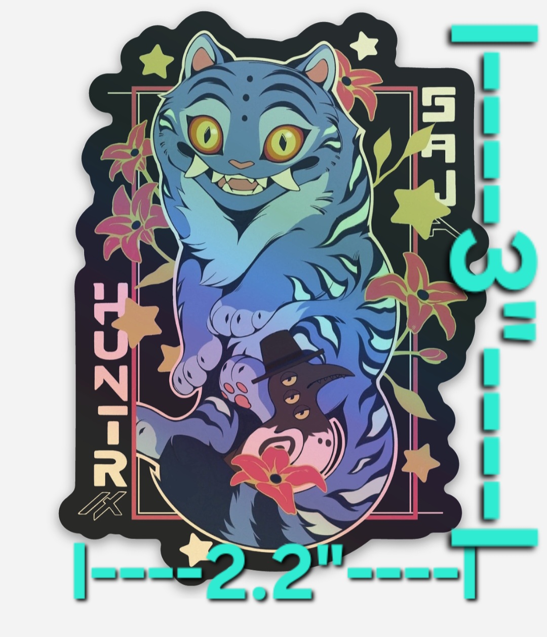 Bring some playful chaos to your world with this holographic sticker! Featuring Jinu’s quirky tiger and cheeky magpie, it shimmers with rainbow vibes from every angle. Stick it on your laptop, water bottle, or favorite notebook to add a pop of sparkle with a whole lot of personality. Perfect for anyone who loves a little mischief and a lot of charm!