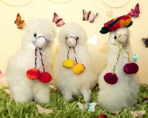 Crochet Llama with Pom poms, Peruvian handmade alpaca plushie...