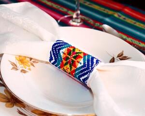6 CHRISTMAS Peruvian napkin ring, wide fabric Peruvian trim, ...