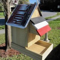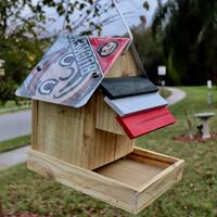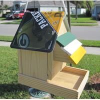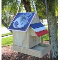 Webmizz1: My husband and I are from Wisconsin and Georgia originally. It’s ironic but we sell at lot of bird feeders from Wisconsin (GO PACK) and Georgia (how bout them Dawgs). My husband loves work working and we love birds, so we started to make bird feeders. The roofs are made from Licensed aluminum license plates from professional and college sports team around the US. We can also customize with the plate of your choice if available.
