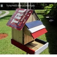 - Made out of 100% wood, acrylic paint, with an aluminum license plate roof and galvanized rust proof nails.