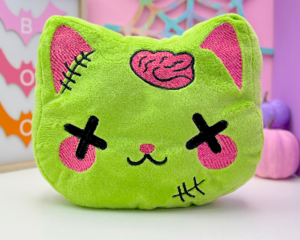 Zombie Cat Plush Throw Pillow – Creepy Cute Lime Green Hallow...