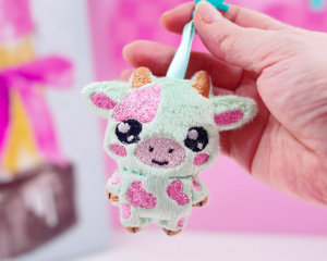 Mint Chibi Cow Cute Bag Charm Plushie, Cow Accessory, Plush C...