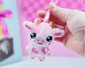 Pink Chibi Cow Cute Bag Charm Plushie, Cow Accessory, Plush C...