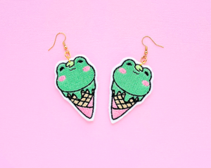 Cute Kawaii Frog Ice Cream Earrings
