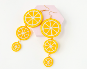 Kawaii Lemon Slice Earrings – Triple Dangle Citrus Earrings –...
