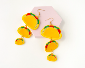 Cute Kawaii Taco Earrings – Embroidered Triple Taco Dangle Je...