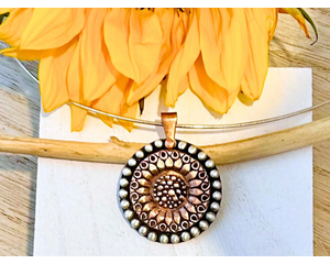 Sunflower Necklace Pendant. Copper and Silver Jewelry Handmade