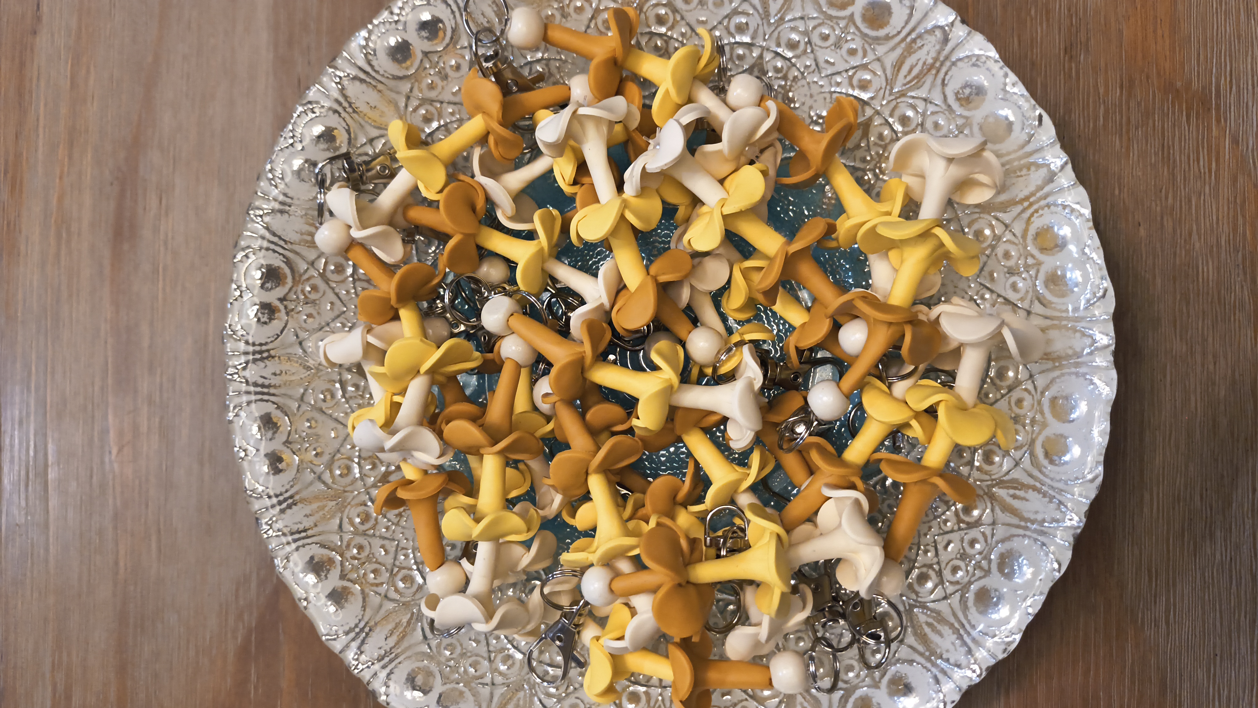 Forever keychain with handmade clay puakenikeni flowers