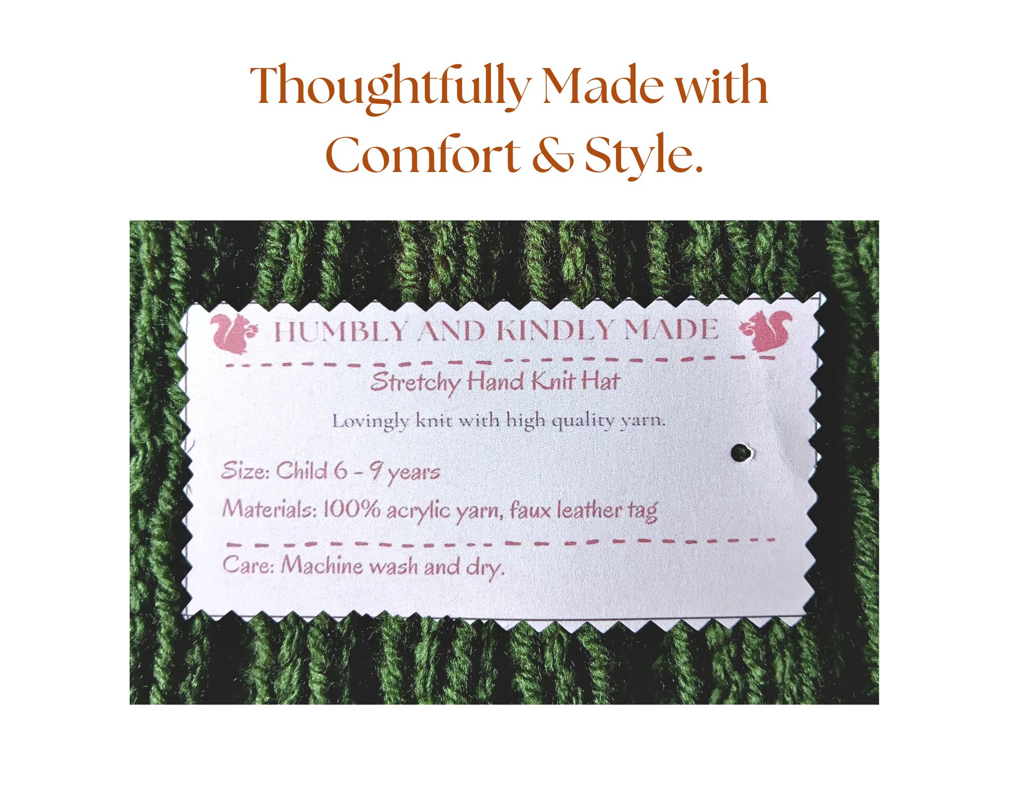 Hand Knit Winter Hat for Kids Ages 6 to 9 — Warm, Stretchy, and Made with Care