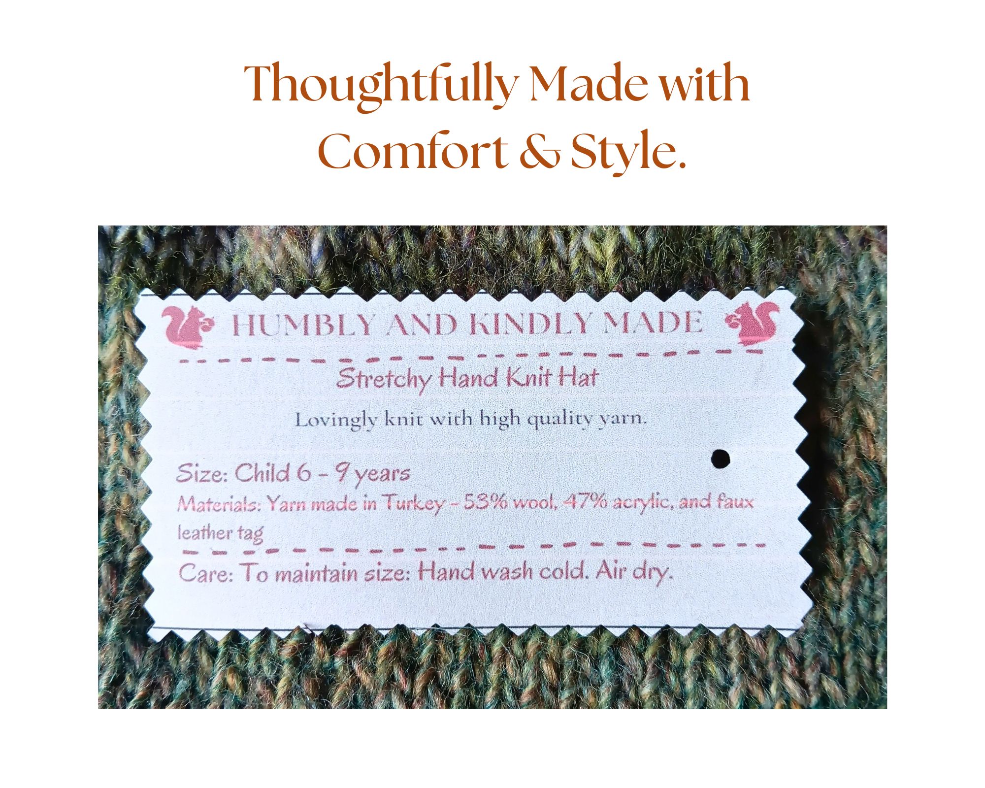 Hand Knit Winter Hat for Kids Ages 6 to 9 — Warm, Stretchy, and Made with Care