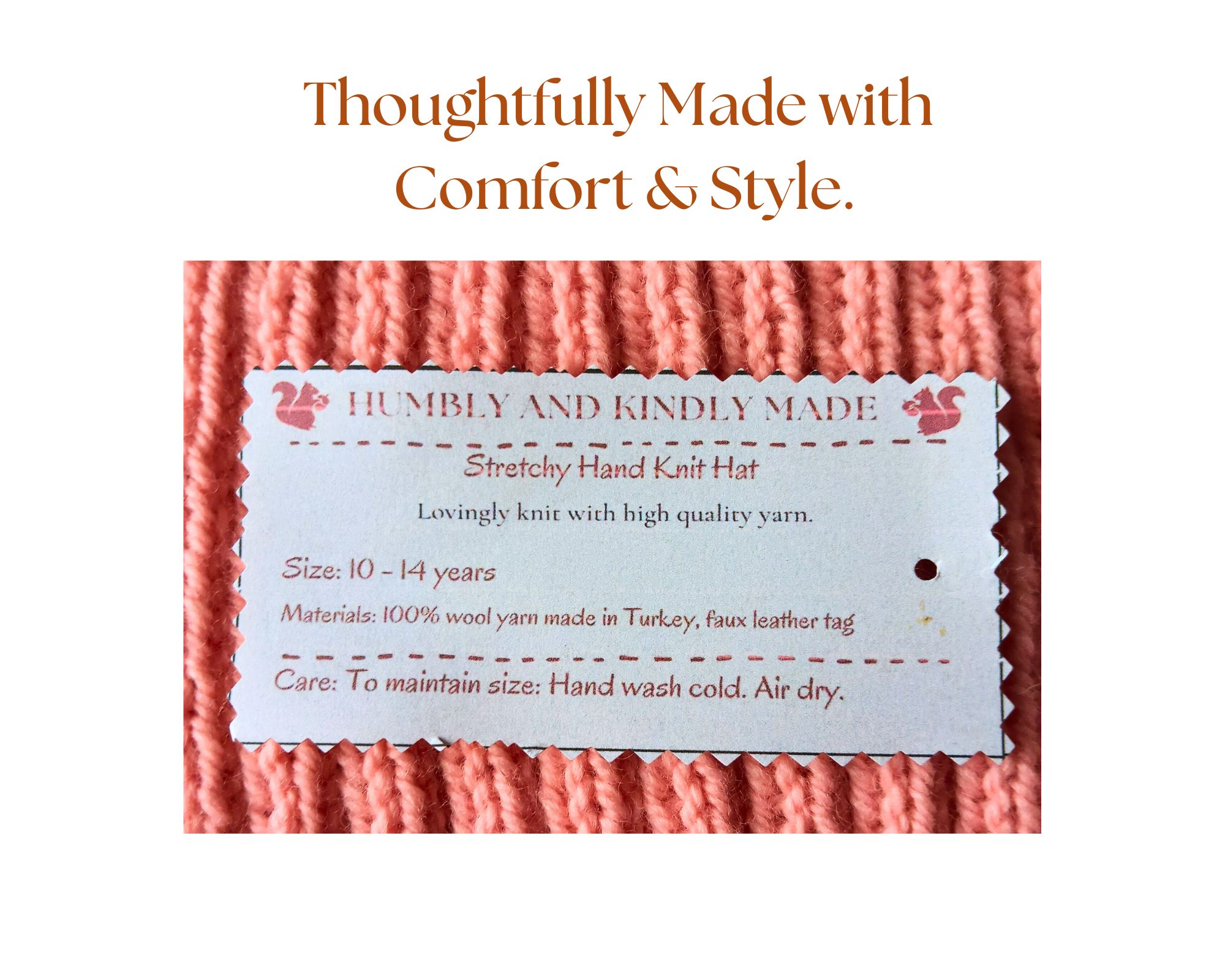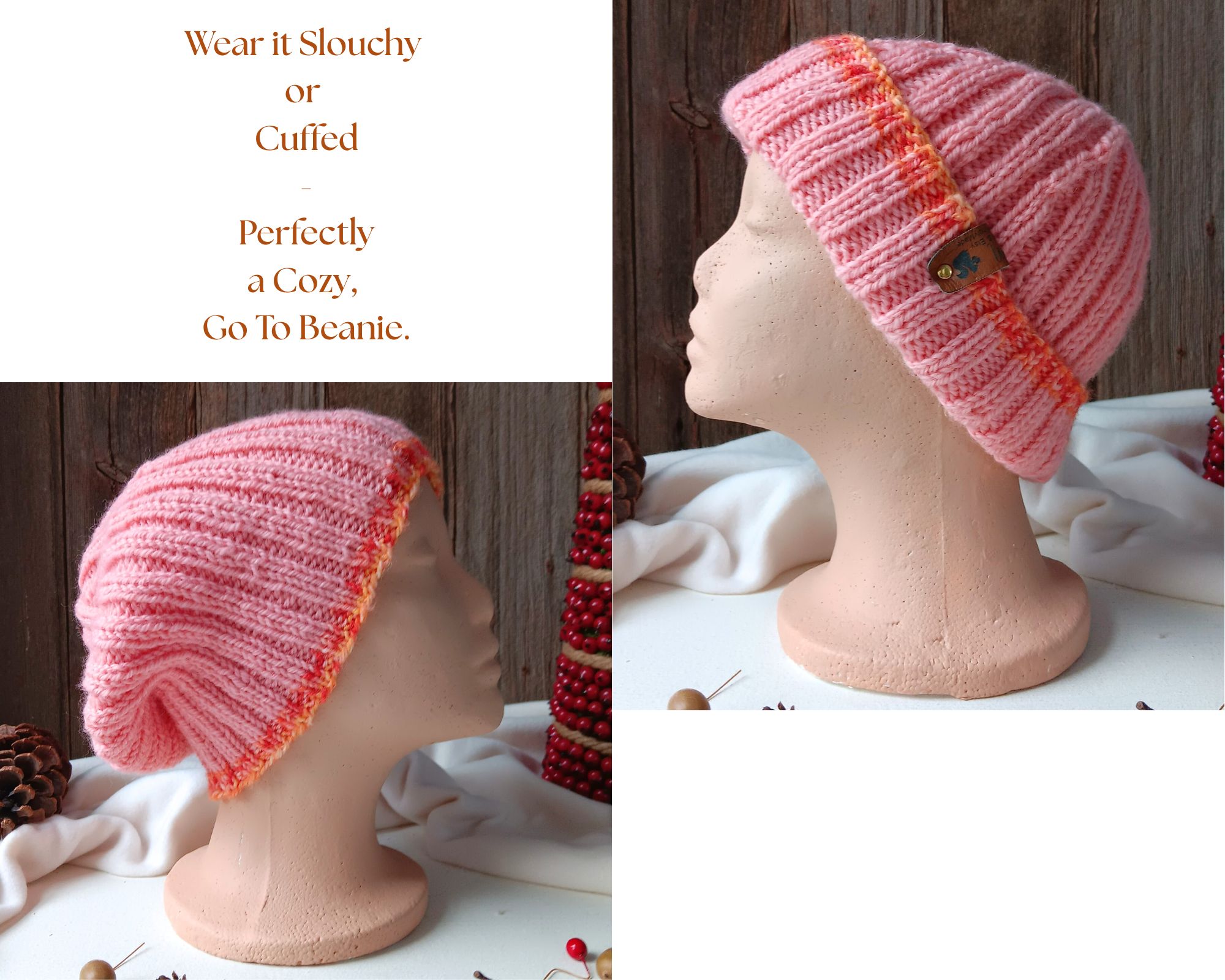• Cheerful Natural Tones: Rustic pink yarn, made in Turkey, brings a woodland inspired charm that brightens winter days.