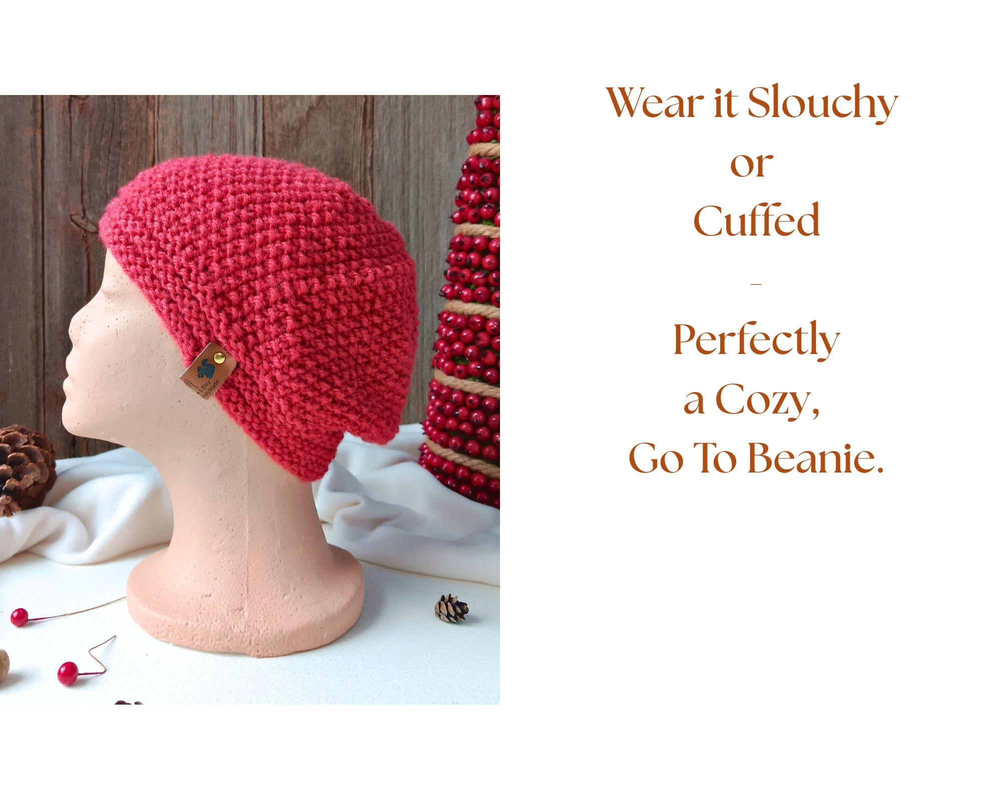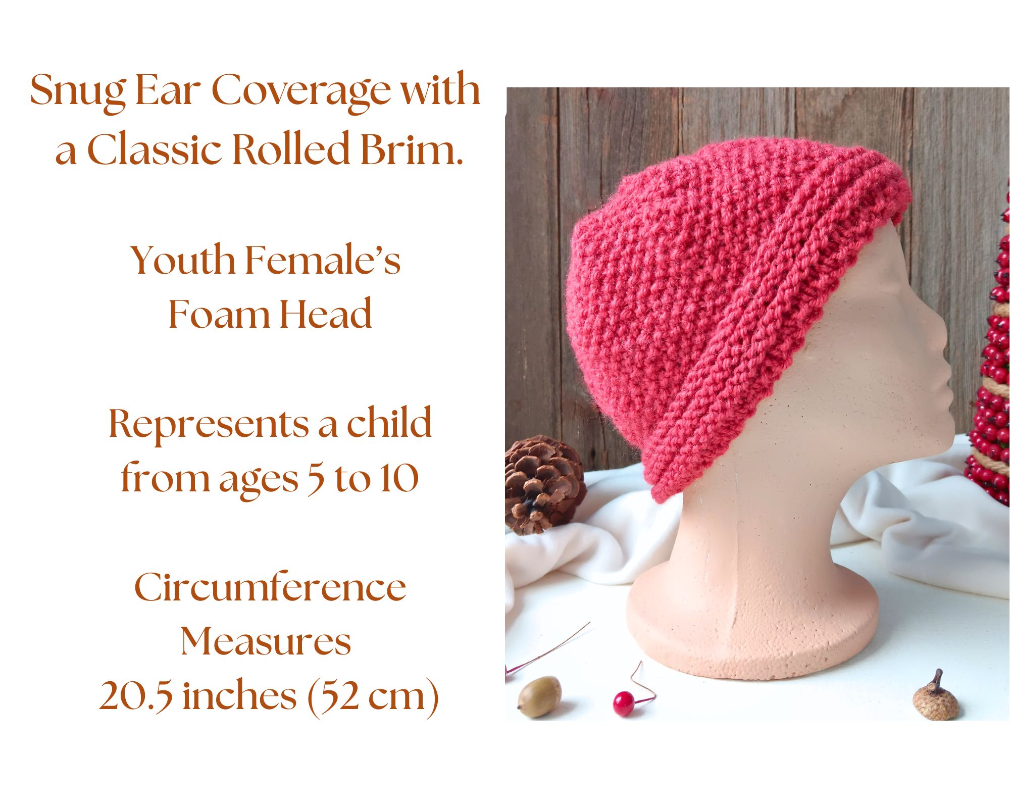 Whether worn slouchy or cuffed, this hand knit youth hat adds cozy warmth and handmade charm to any cold weather outfit — a timeless winter accessory made to be worn, loved, and passed along.