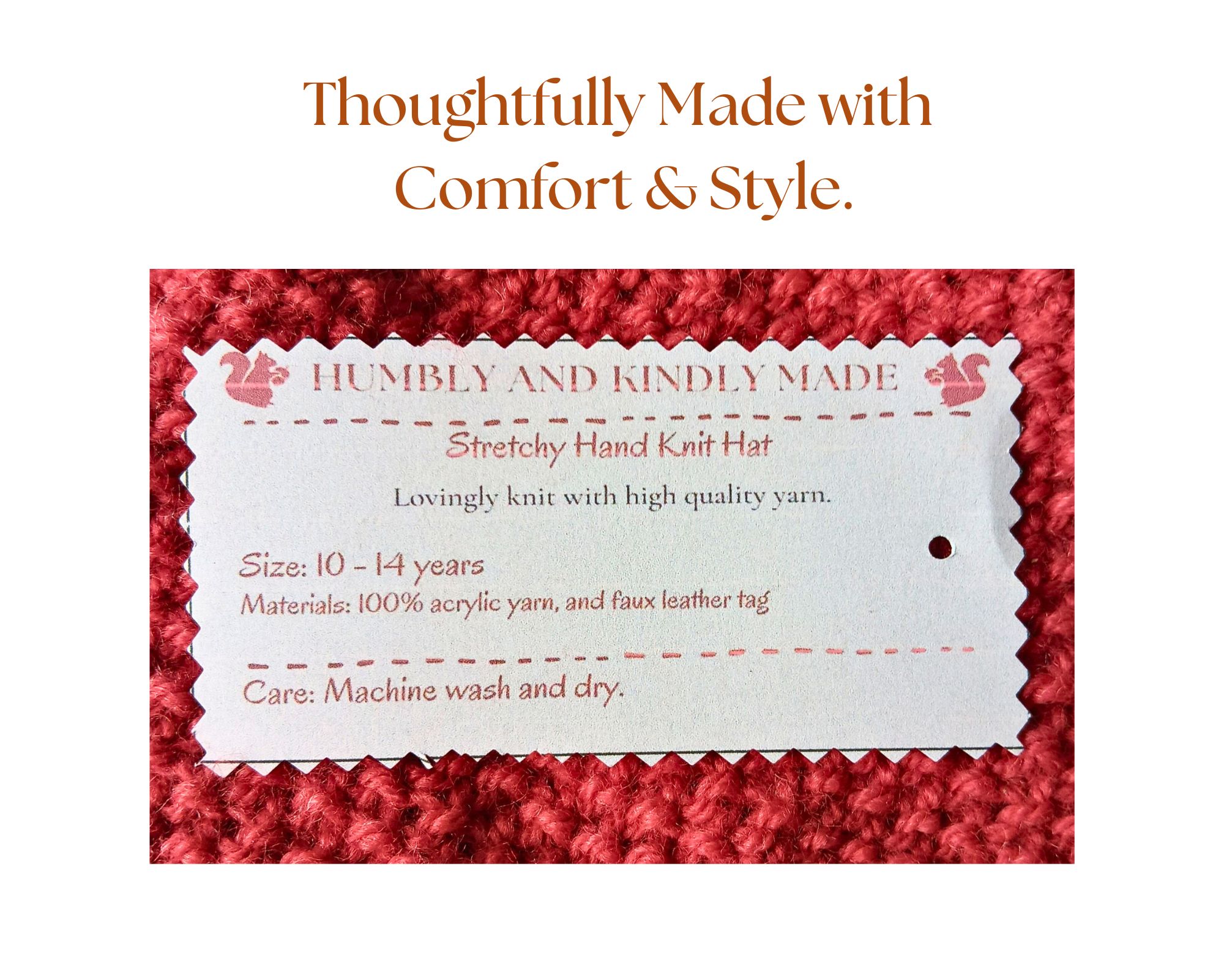 Hand Knit Winter Hat for Kids Ages 10 to 14 — Warm, Stretchy, and Made with Care