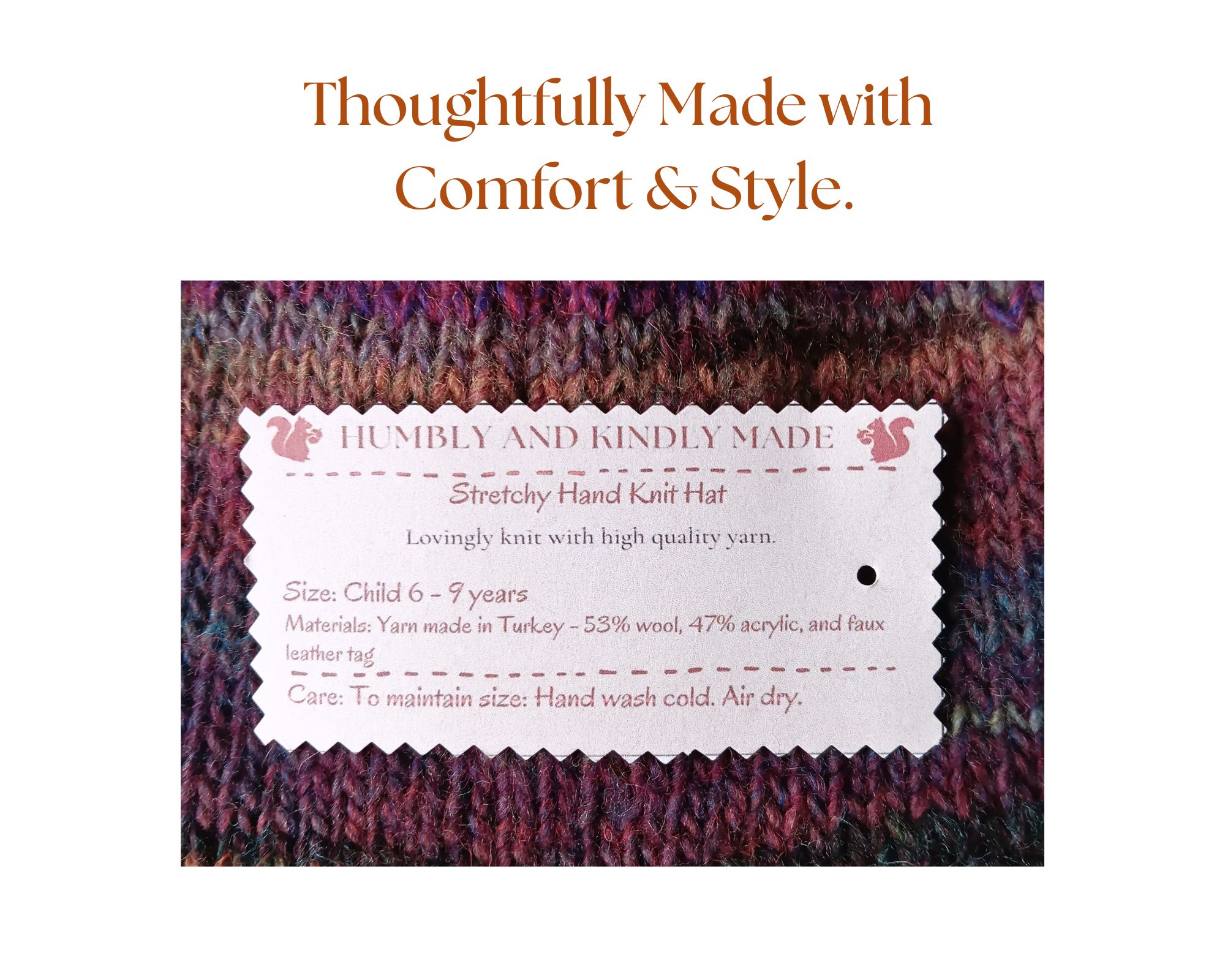 Hand Knit Winter Hat for Kids Ages 6 to 9 — Warm, Stretchy, and Made with Care