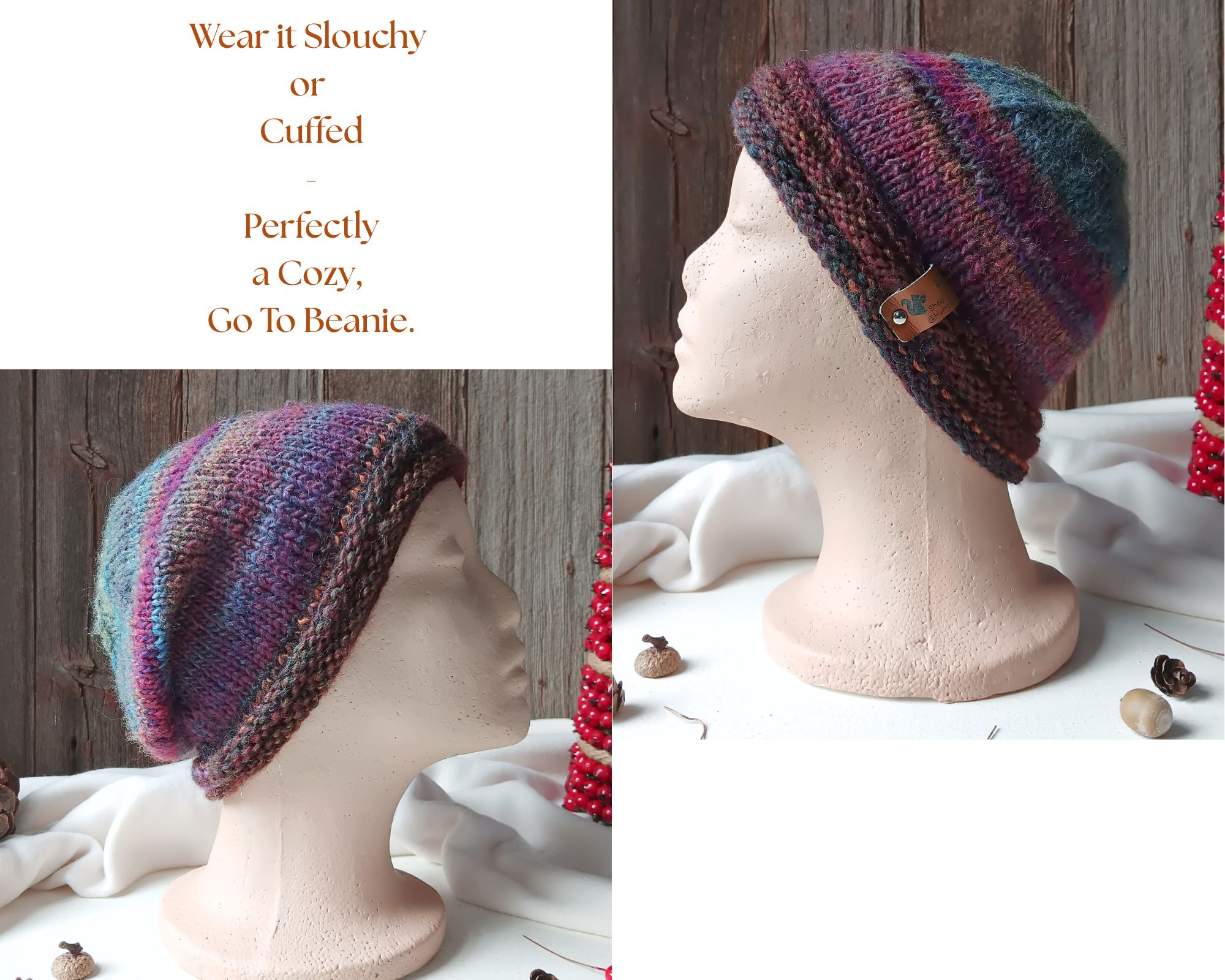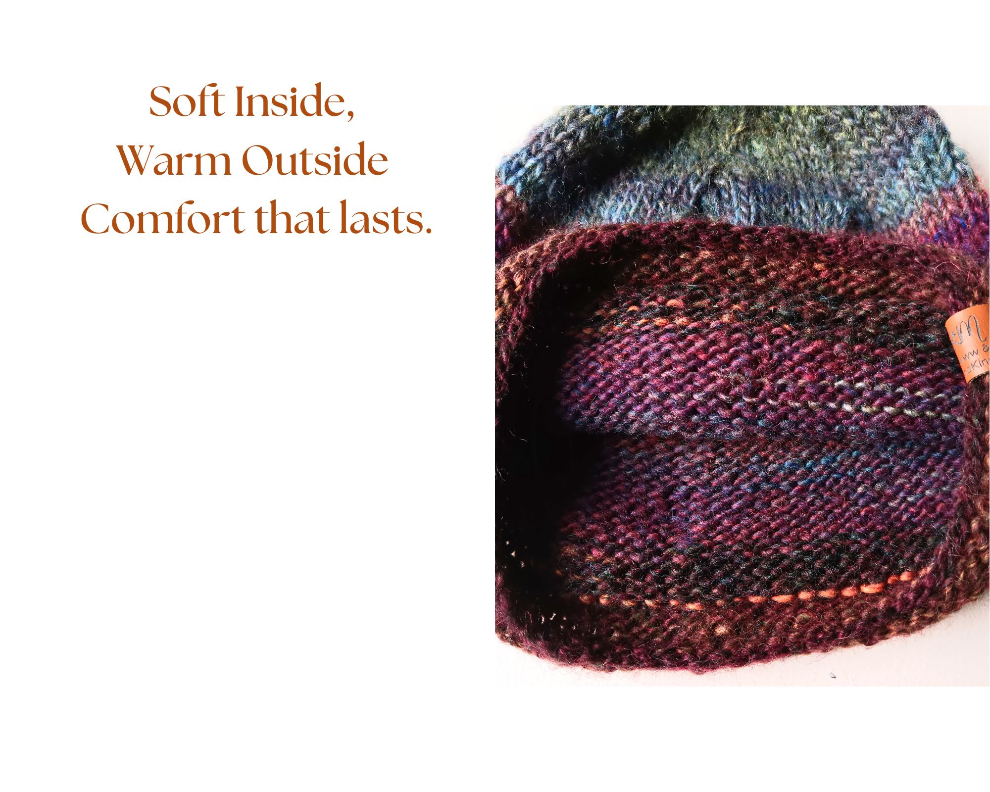 Soft, cozy, and handmade for younger kids, this rustic purple wool blend hat brings cheerful warmth to chilly days.