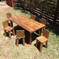 Kids table and chairs. Multi-colored chairs. Solid wood.