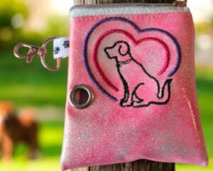 Embroidered dog poop bag holder- Handcrafted waste bag dispen...