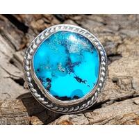 This gorgeous Kingman nugget is set in solid sterling silver with a comfortable wide band.