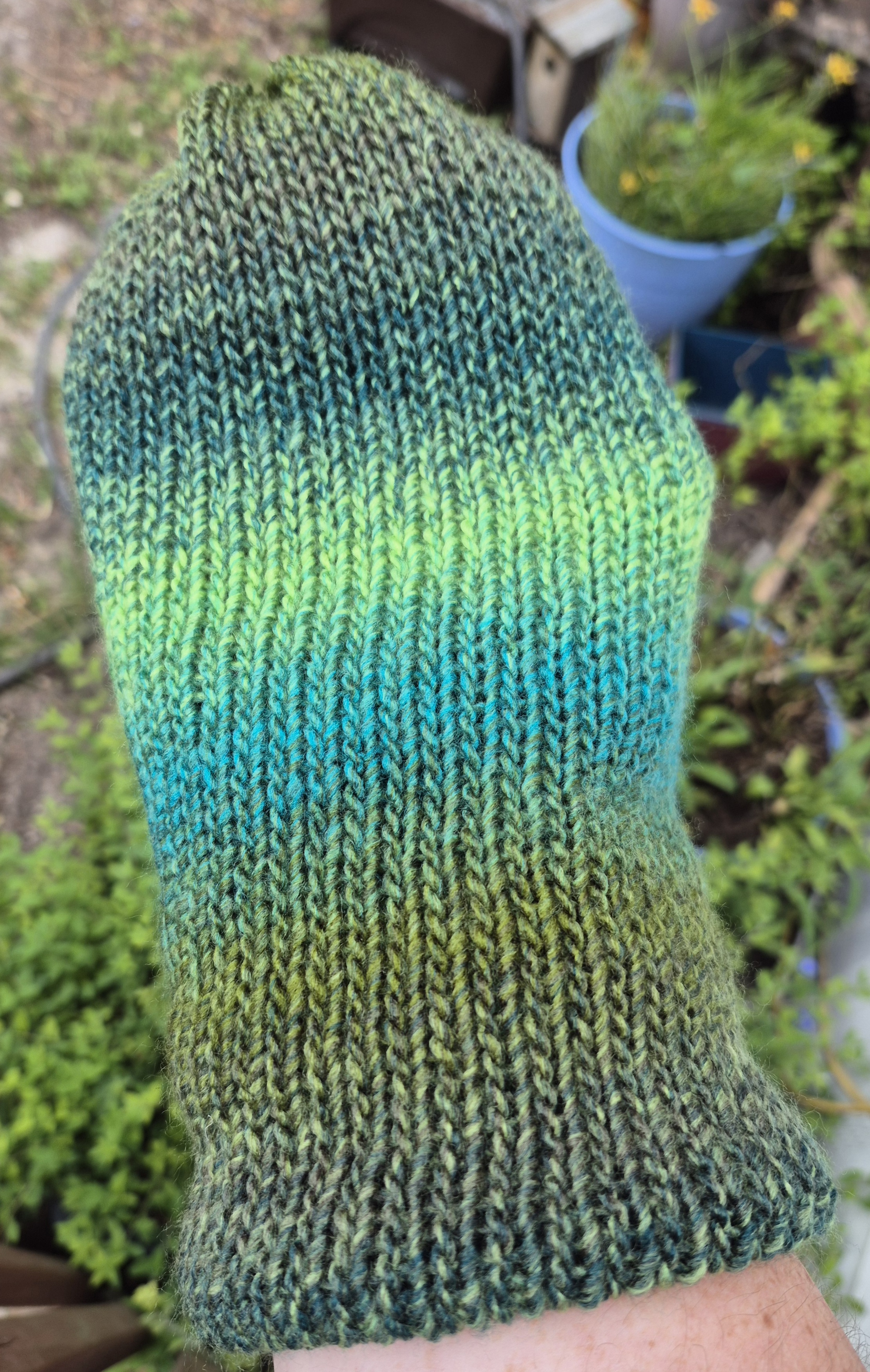 Made by me and other tools. Made with a soft acrylic yarn.