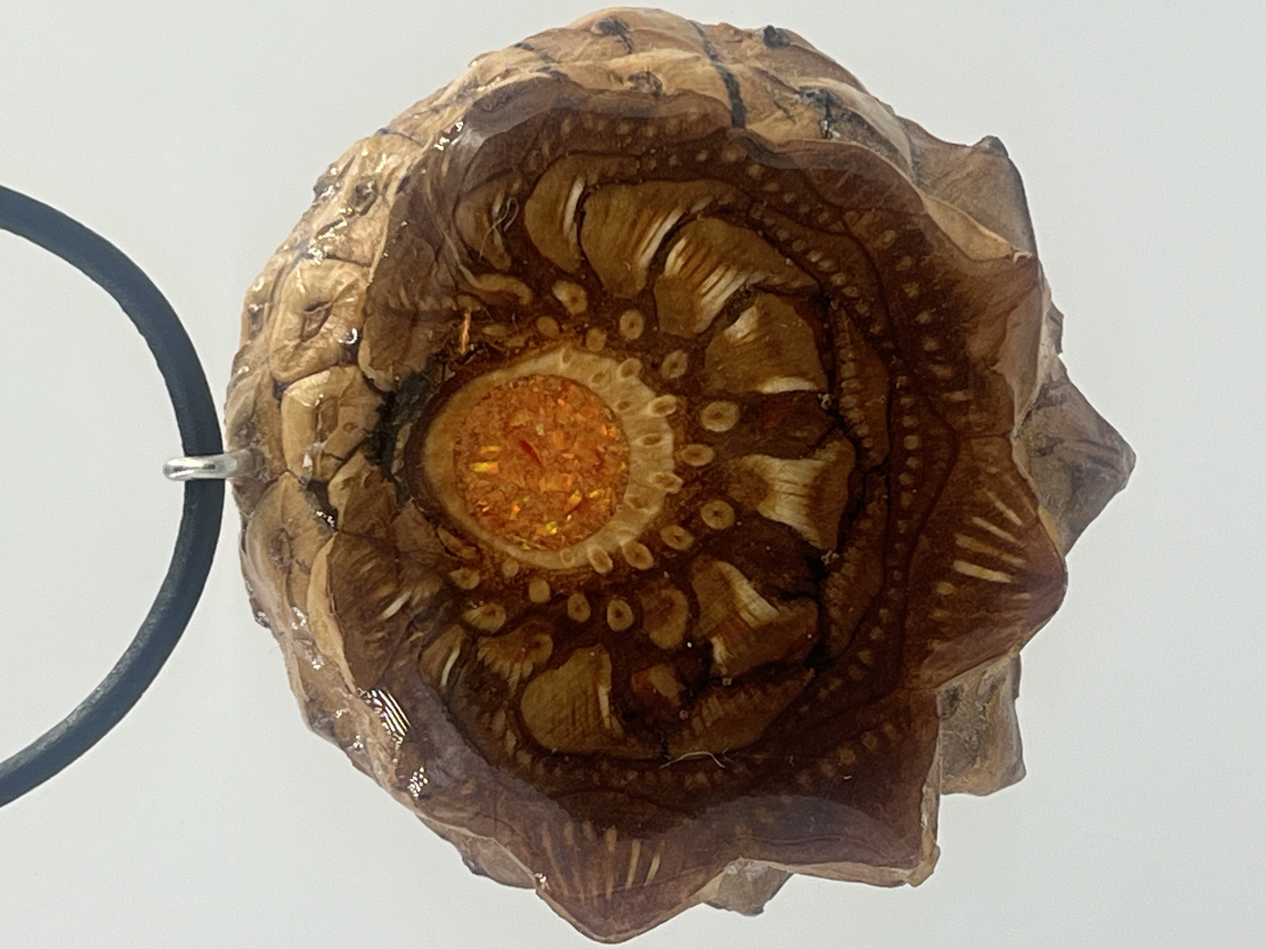 Our pendants are made from the Mount Shasta knobcone pinecones. Also known as third eye pinecones. Our pinecone pendants are hand-crafted from the center of the world’s densest pinecones. With meticulous attention to detail, we hand select each pinecone ensuring that every creation is infused with the spirit of the outdoors. Our pinecone pendants are sealed in resin to highlight and protect the organic fractal beauty.