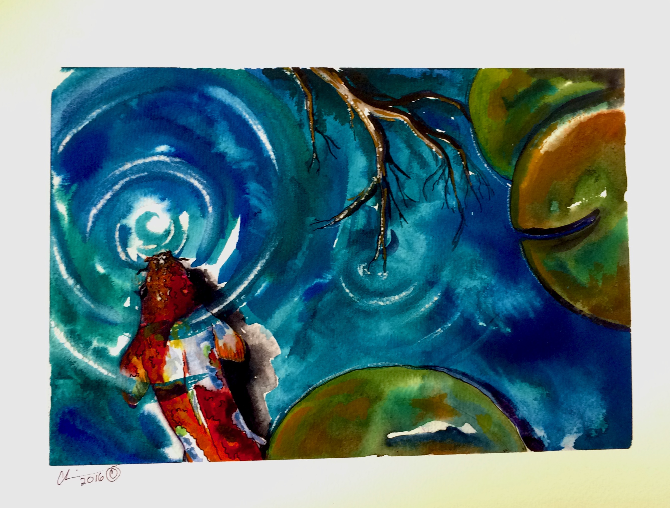 "Koi Pond Study 1" is an original watercolor on watercolor paper. It is signed and dated.