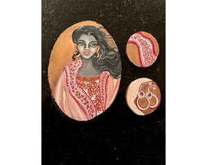 Hand Painted wooden Tray and Coaster set. Beautiful woman ind...