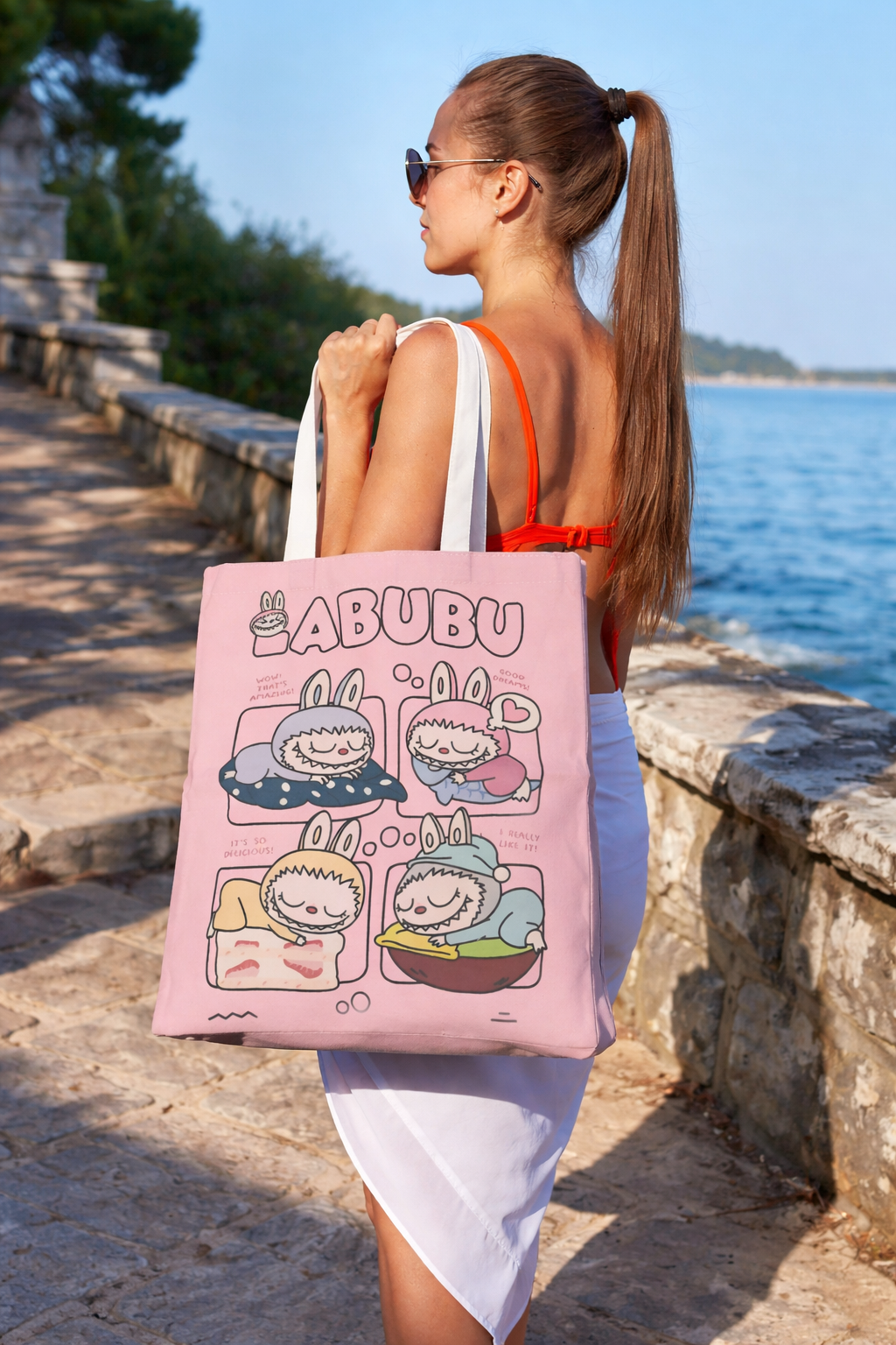 Labubu Style Character Tote Bag- Single Bag/ Sleepy Time- Pink