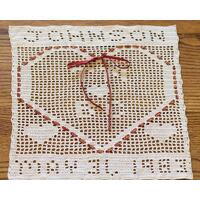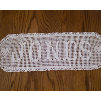 Looking for a unique and special gift for a wedding or anniversary? Look no further! This personalized cotton doily is a truly one-of-a-kind present that will be cherished for years to come. The doily features the couple's name and is handmade with intricate care. It comes beautifully framed in a burnt wood frame, enhancing the natural grain of the wood. The frame measures approximately 25 inches wide and 14 inches tall, with the size of the doily varying depending on the length of the name.