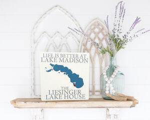Each of our personalized lake signs is handcrafted out of the highest quality components. Our lake house decor is hand cut, painted and finished to ensure your custom wall hanging will last for years.