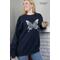 This is a high quality 300 PPI mockup image on a Lane Seven 14004 Crewneck Sweatshirt in the Navy Blue color. This is a digital photograph of the actual product, *NOT* AI generated.