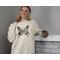 This is a high quality 300 PPI mockup image on a Lane Seven 14004 Crewneck Sweatshirt in the Oatmeal Heather color. This is a digital photograph of the actual product, *NOT* AI generated.