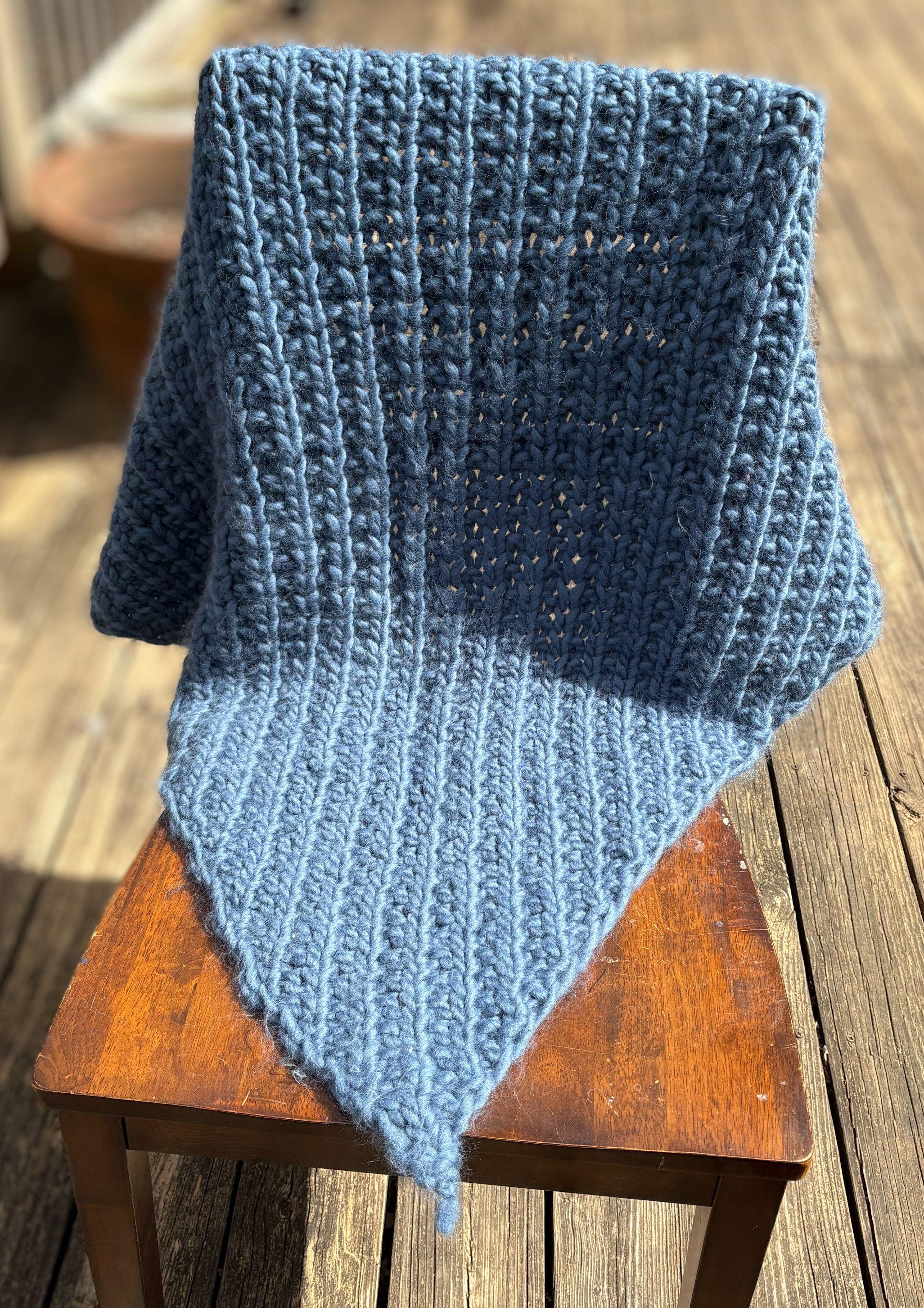 This shawl is made with 100% wool and is warm and smooth. Despite the inherent texture of wool, this shawl is very soft! It measures 56” across the shoulders.
