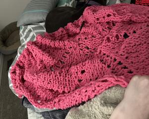 After receiving the yarn, I will knit following a pattern to create the shawl. Each stitch is handmade and carefully done.