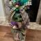 Layers of colorful green, gold and purple mesh add glam to the base.