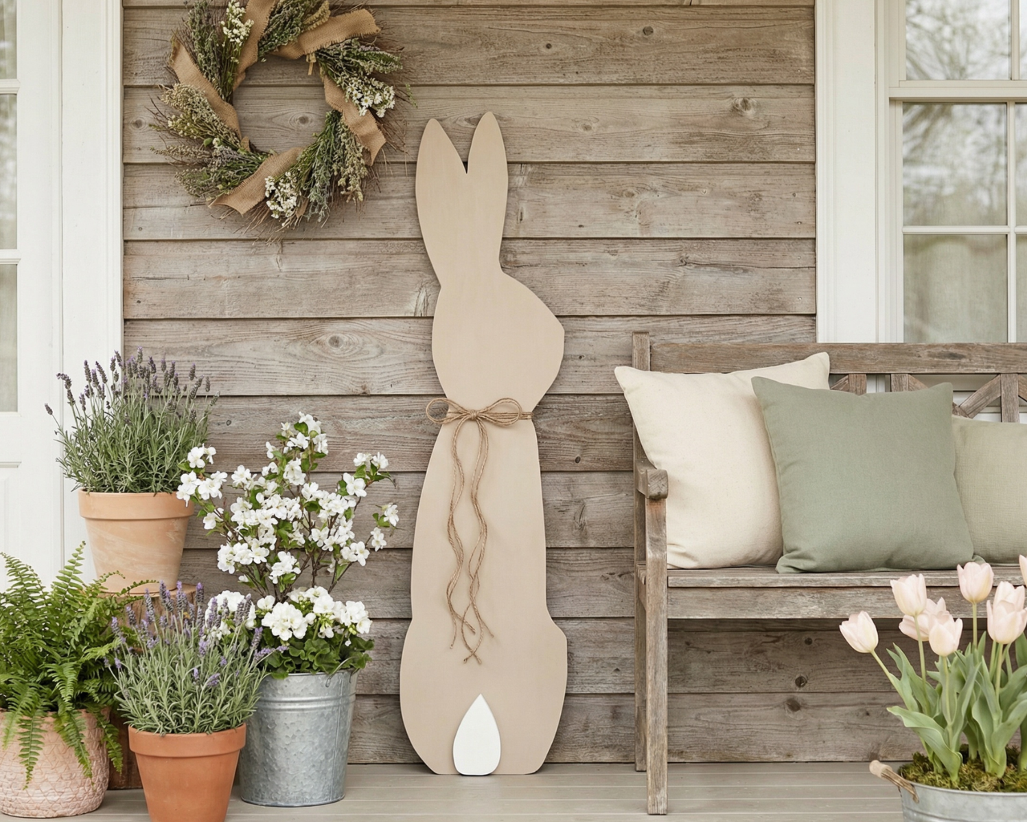 Welcome a touch of seasonal charm to your home with this handcrafted wooden rabbit porch leaner. Made from solid wood, this minimalist design is perfect for those who appreciate simple elegance. Whether placed outdoors on a covered porch or indoors in your entryway, this rabbit adds a cozy vibe to any space. A jute twine bow tied around the neck completes the look, lending a delightful touch of texture and warmth. Sturdy and built to last, this rabbit leaner makes a lovely statement piece that celebrates the beauty of understated decor while seamlessly blending into your home’s style.