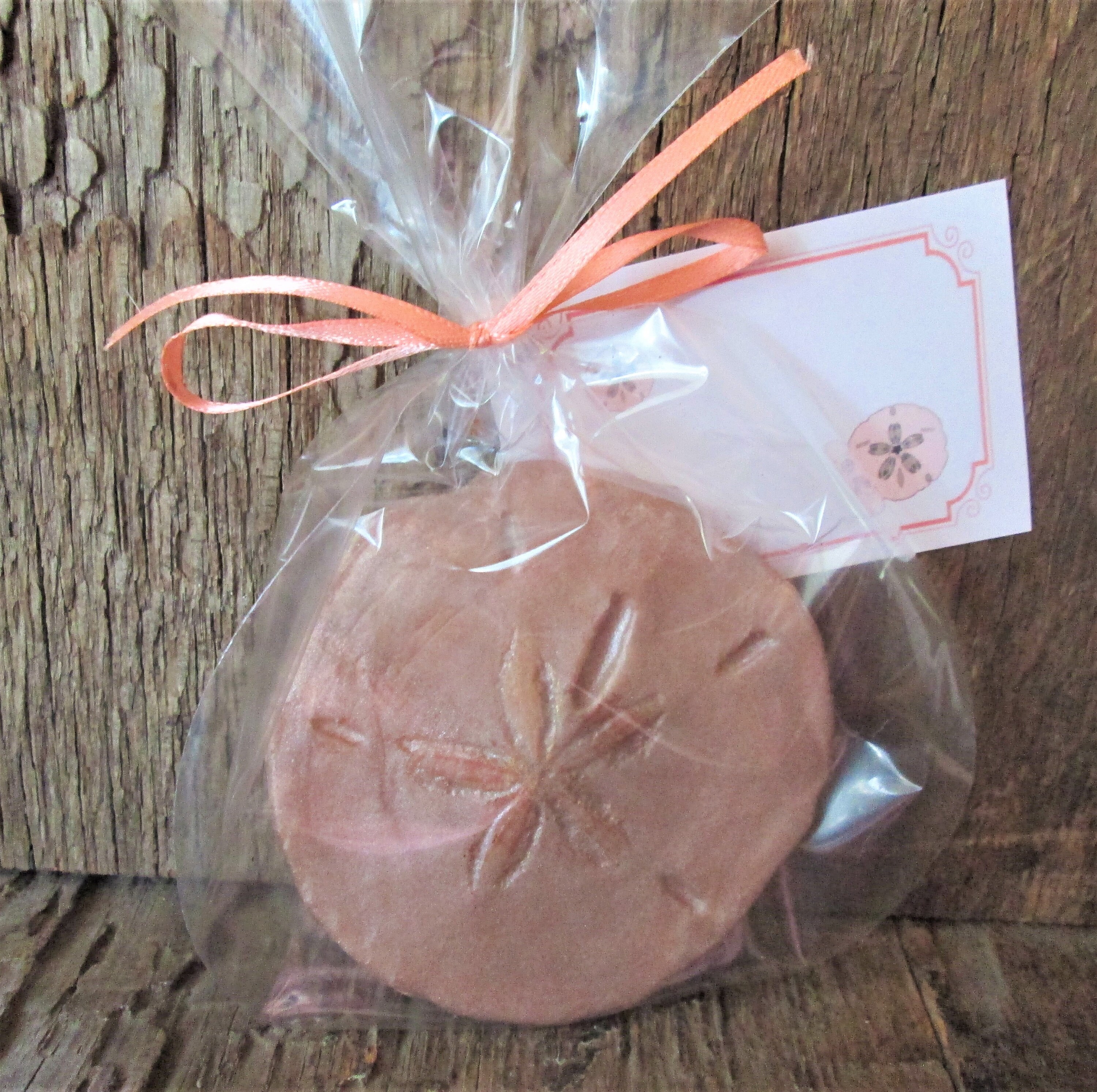 Each sand dollar measures approximately 3¼ inches across and weighs .7 oz. Every soap is individually wrapped in a clear cellophane gift bag, finished with a matching ribbon and a personalized gift tag, ready to gift.