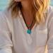This captivating pendant necklace features a teardrop-shaped genuine, iridescent shell. Each of the five different colors of shell boasts a stunning spectrum of deep ocean tones that catch the light beautifully. The smooth, polished surface highlights the natural swirls and unique patterns of each shell.