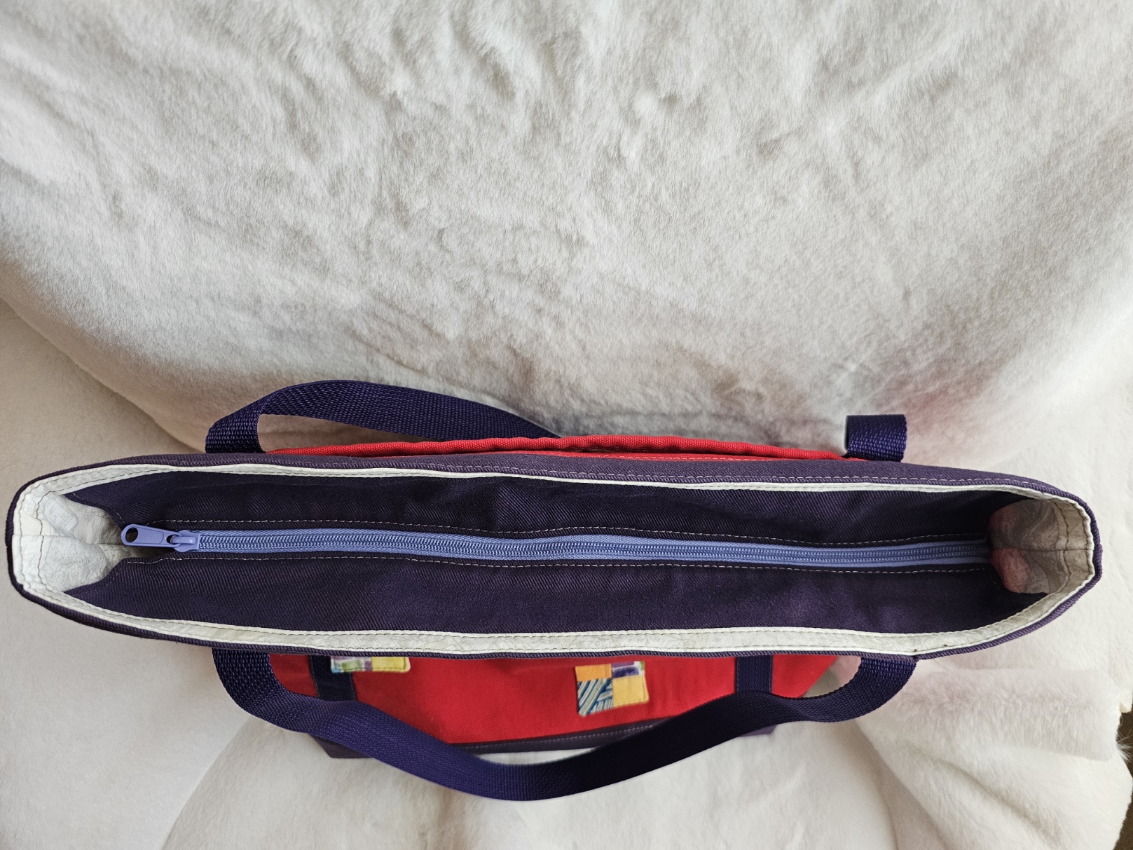 I make most of my bags with a lighter colored interior because it makes for finding things easier.
