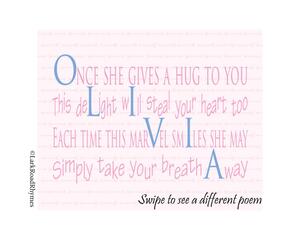 Tell them how loved they are with this one of a kind memento. Your poem will be a treasured reminder of a first birthday, baptism, First Communion, or other special event. I write name poems for confirmations, memorials, weddings, anniversaries, teachers, & family. The poem is written around the name. You give me the name, 10 letters or less, and I write a 4 line rhyming poem around it. If you need a poem with specific wording there are additional charges.