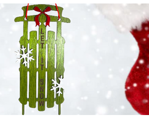 Christmas Cheer: Green Sled Ornament with Bow and Snowflakes