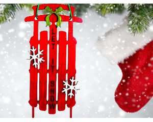 Christmas Cheer: Red Sled Ornament with Bow and Snowflakes