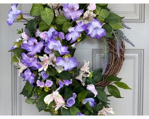 Purple Petunia Flowers Wreath for Front Door Handmade, Option...