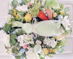 Easter bunny wreath with mixed flowers for front door, Spring...