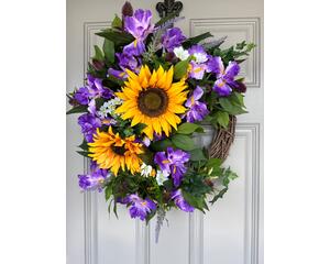 Purple Petunia Flowers Wreath for Front Door Handmade, Option...