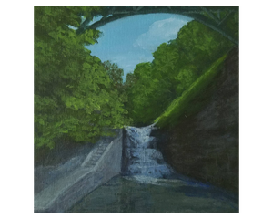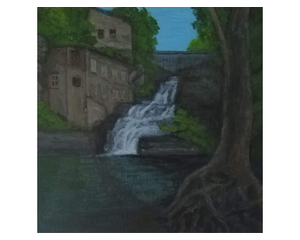 Triphammer Lower Falls | 6x6 Original Acrylic Painting on Woo...