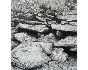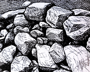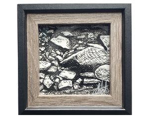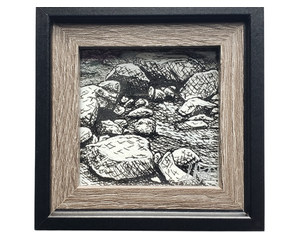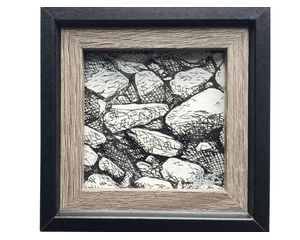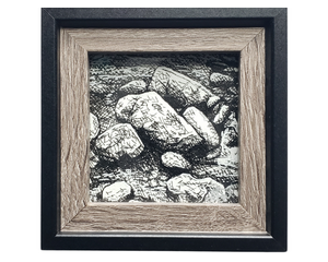 Random Rocks | 4x4 | Original Ink Drawing Framed