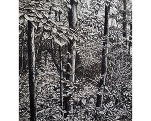 Plant-Covered Rocks on the Trail | 6x6 Original Ink Drawing M...